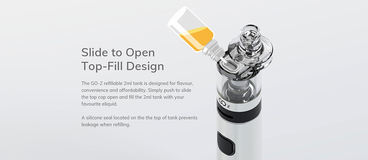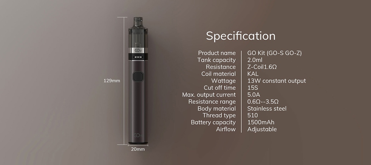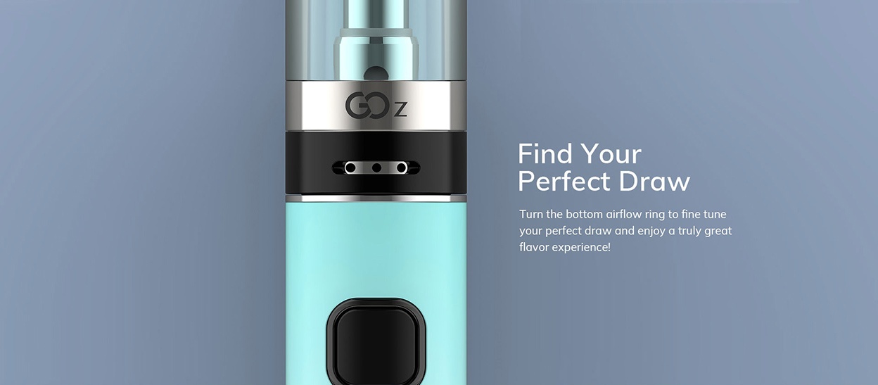 Το Go Ζ Kit της Innokin, συνδυάζει ισχύ και φορητότητα με λεπτή σχεδίαση, με το Pen Style σχεδιασμό του και το ελάχιστο βάρος που διαθέτει, μπορεί να μεταφερθεί με άνεση ακόμα και στην τσέπη μας. Διαθέτει ένδειξη χωρητικότητας μπαταρίας τριών χρωμάτων και ενσωματωμένες ασφάλειες για την ασφάλεια της μπαταρίας στην οποία μπορείτε να βασιστείτε. Ο ατμοποιητής Go Ζ έχει χωρητικότητα δεξαμενής 2ml και ειδικό σύστημα προστασίας ώστε να μην έρχονται σε επαφή τα παιδιά με το υγρό αναπλήρωσης. Η αναπλήρωση του υγρού γίνεται από το πάνω μέρος του ατμοποιητή αποφεύγοντας έτσι τις ανεπιθύμητες διαρροές. Ο ατμοποιητής Go Z διαθέτει ενσωματωμένη αντίσταση 1.6ohm και χωρητικότητα δεξαμενής 2ml. Είναι κατασκευασμένος από πλαστικό υψηλής ποιότητας PCTG και είναι ανθεκτικός σε χτυπήματα και σε υψηλές θερμοκρασίες ενώ διαθέτει και ειδικό σύστημα προστασίας ώστε να μην έρχονται σε επαφή τα παιδιά με το υγρό αναπλήρωσης. Ρυθμίζοντας το Airflow μπορούμε να επιλέξουμε την ροή του αέρα που επιθυμούμε να εισέρχεται στον ατμοποιητή μας. Η εισαγωγή του αέρα γίνεται μέσω της τριπλής οπής που διαθέτει ο ατμοποιητής και με τη βοήθεια του περιστρεφόμενου δακτυλίου που υπάρχει στο κάτω μέρος του ατμοποιητή μπορούμε να τη ρυθμίσουμε με ακρίβεια την ροή του αέρα στο επίπεδο που επιθυμούμε.