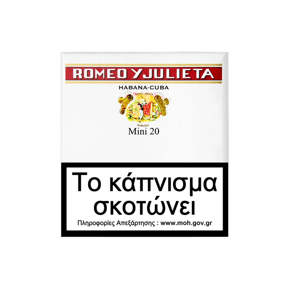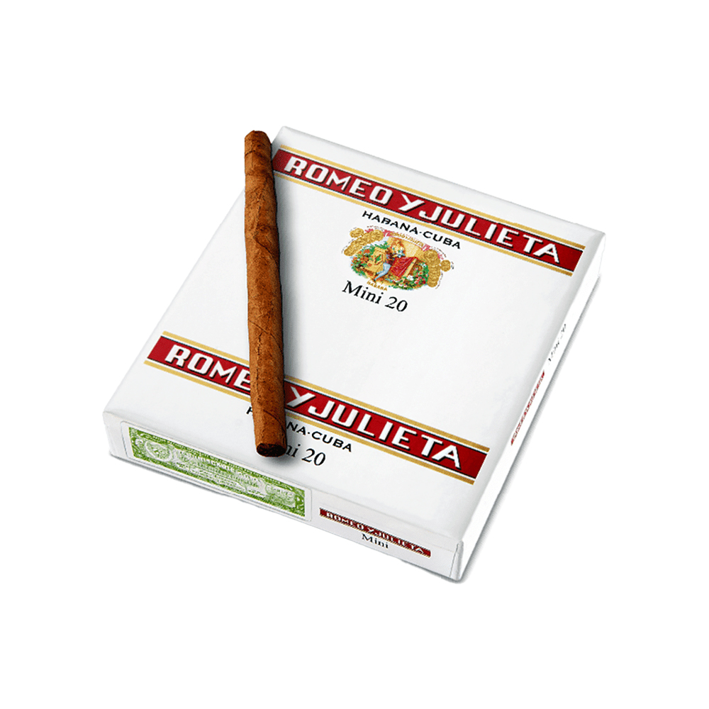 Cigarillos Romeo Y Julieta. Ελφρά προς μέτρια πουράκια με ήπια γεύση. Προσφέρονται σε βολικά μεγέθη – συσκευασίες, για ένα ιδανικό διάλειμμα. Σε μέγεθος Mini, είναι το μικρότερο στα Cigarillos της Κούβας, η ιδανική επιλογή για μια σύντομη απόλαυση.